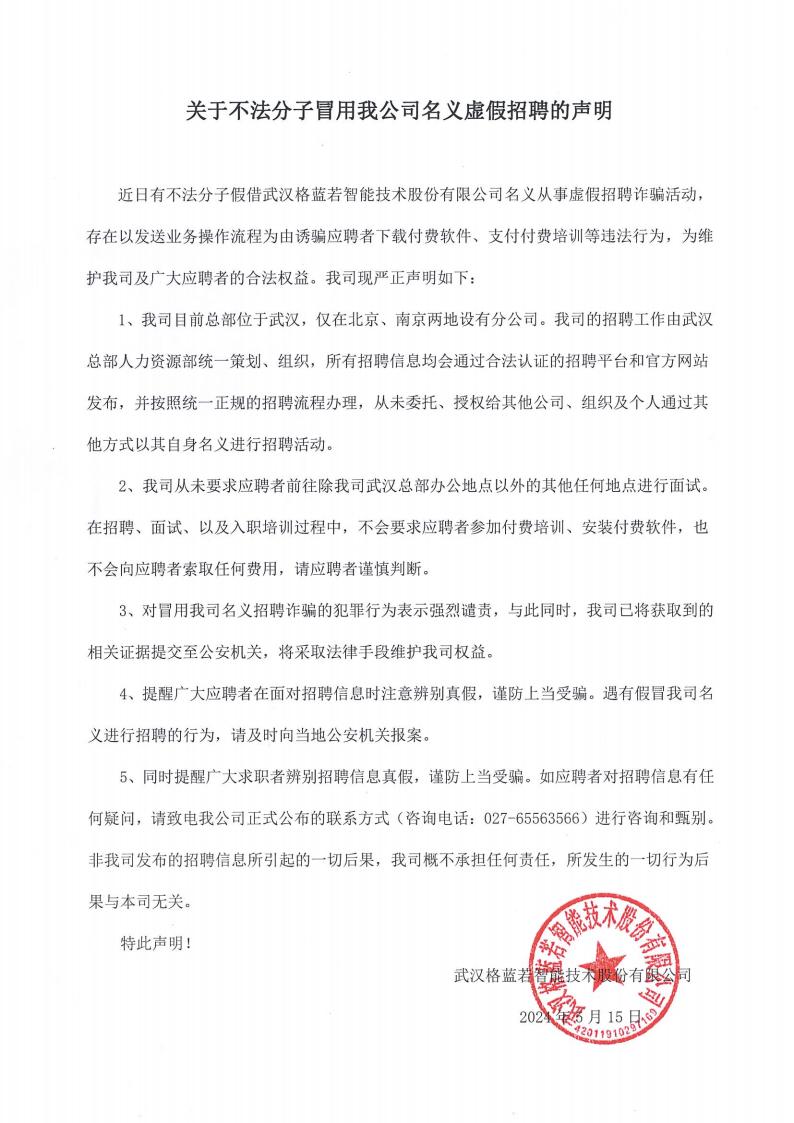 關于不法分子冒用我公司名義虛假招聘的聲明